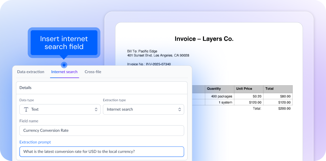 With AI schemas, you can turn messy files into clean, ready-to-use data without manual configuration. fileAI auto-classifies each file and generates a schema you can edit and enrich using natural language prompts. Add new fields via internet search, set guardrails to keep extracted data consistent, or format fields to fit your needs. Flexible and easy to use, AI schemas put you in control of your data. Documentation