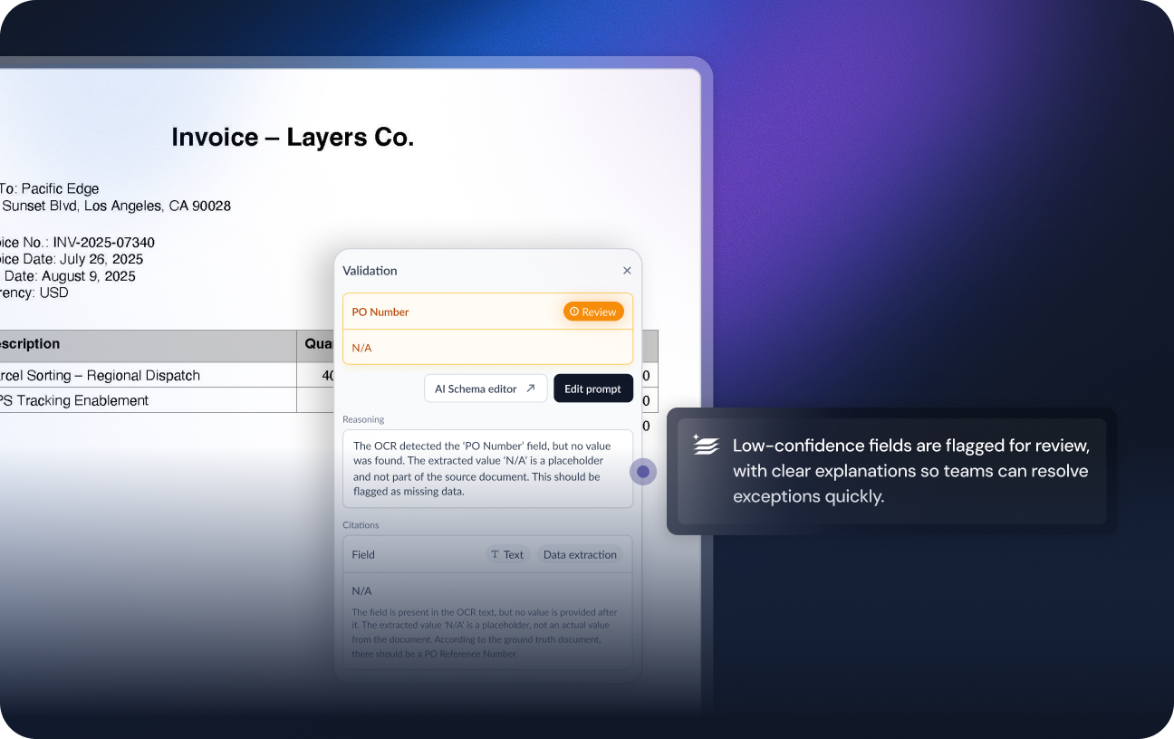 Our AI comes ready to work. With multimodal OCR and zero-shot classification, it instantly recognizes and accurately extracts data from complex invoices, receipts, and statements — no training required.